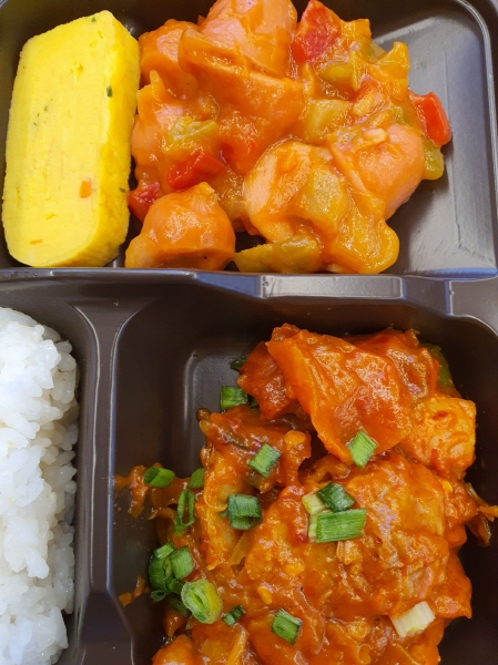마늘쫑을 매우 잘게 다져서 덮밥으로 출시하면 인기 꽤 좋을 것 같았어요. 이 도시락의 메인도 아니고 양으로 봐도 별 거 아닌 반찬이었지만, 맛은 이게 제일 맛있었어요.