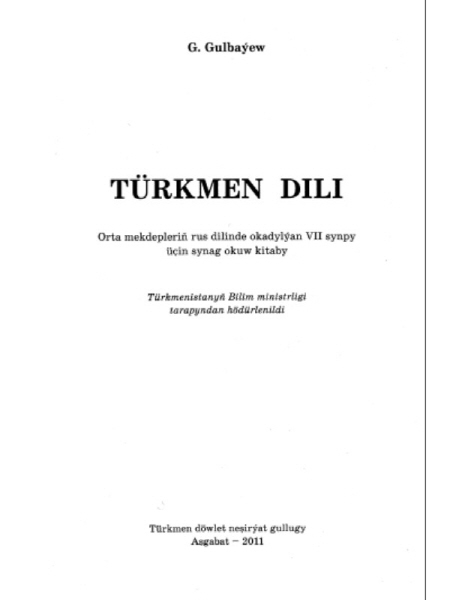 이번에 소개할 교과서는 투르크메니스탄의 러시아인 학교 7학년 투르크멘어 교과서에요. 이 교과서는 2011년에 출판된 교과서에요. "와, 드디어 다 봤네." 투르크메니스탄의 러시아인 학교 7학년 투르크멘어 교과서를 드디어 다 읽었어요. 투르크메니스탄의 러시아인 학교 7학년 투르크멘어 교과서를 본격적으로 읽기 시작한 것은 5월초였어요. "어차피 구하기는 글렀잖아." 투르크메니스탄의 러시아인 학교 7학년 투르크멘어 교과서를 제대로 읽기 시작한 결정적 이유는 바로 투르크메니스탄의 러시아인 학교 투르크멘어 과목 교과서를 구하는 것은 이제 깔끔히 단념했기 때문이었어요. 예전에는 계속 실낱같은 희망을 갖고 있었어요. 투르크메니스탄의 러시아인 학교 투르크멘어 과목 교과서를 전부 구해서 순서대로 보고 싶었어요. 투르크메..