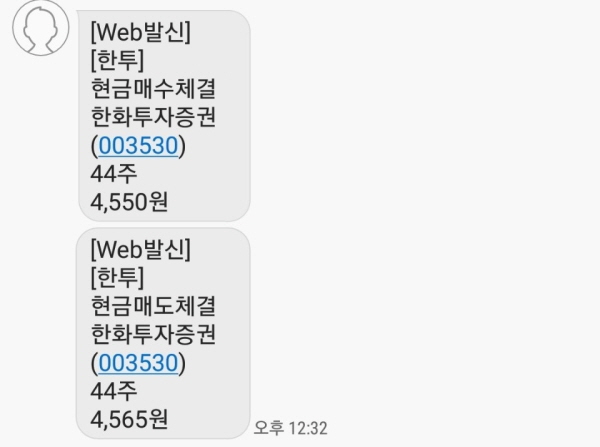 한화투자증권 주식을 4550원에 44주 매수해서 4565원에 전량 매도했어요.