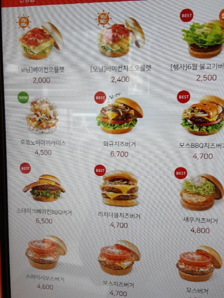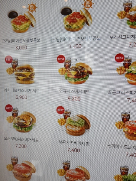 모스버거 모스의 아침 메뉴가 궁금했어요. 한 번은 먹어보고 싶었어요. 그렇지만 이건 답이 안 나왔어요. 이거 먹자고 집에서 7시에 나와서 서울 명동에 있는 모스버거를 가는 것 외에는 방법이 없었어요. 그러나 아침 7시에 오직 햄버거 하나 먹자고 명동 가는 것은 영 내키지 않았어요.