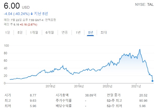 그 다음은 미국 상장 중국 교육주 TAL Education Group 주식인 TAL 주식이에요.