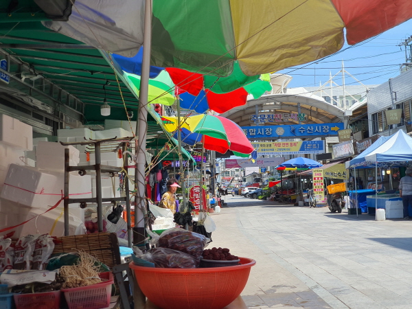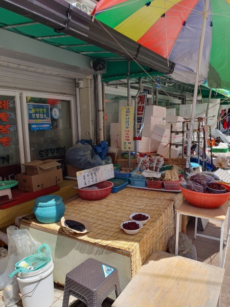 뭔가 마셔야 했어요. 그리고 잠깐 앉아서 쉬고 싶었어요. 음료수 파는 곳을 찾으며 주문진 종합시장을 걸어다니며 구경했어요.