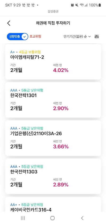 삼성금융네트웍스에서 판매하는 금융상품 중에는 장외채권 상품이 있었어요. 삼성증권 계좌가 있으면 모니모에서 삼성증권에서 장외채권으로 판매하는 장외채권을 투자할 수 있었어요.