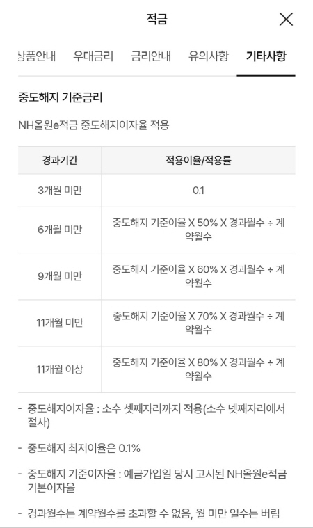 중도해지 이율은 위와 같아요.