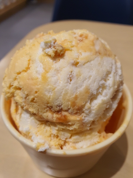 배스킨라빈스 춘식이의 고구마얌! 아이스크림을 먹으면서 놀란 점은 달콤한 고구마맛과 달콤씁쓸한 달고나 맛이 매우 잘 어울렸어요. 달콤하고 미세하게 구수한 느낌이 있는 고구마맛은 자극적으로 달콤하고 씁쓸한 달고나 맛과 궁합이 좋았어요. 유순한 사람과 독종인 사람이 서로 절친이 되어 서로의 부족한 점을 보완해주는 맛이었어요.