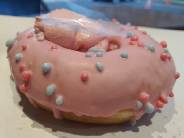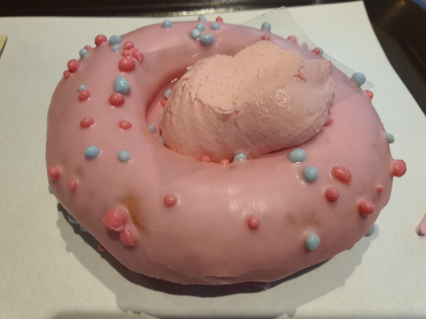 던킨 핑크 팝핑 솜사탕 타트 도넛 맛 자체는 예뻤지만 아쉬운 점도 있었어요. 팝핑캔디가 도넛 전체 양에서 차지하는 양이 매우 적었어요. 게다가 팝핑캔디는 짜르르 터지는 것도 있지만 안 터지는 것들도 있어요. 원래 팝핑캔디가 그래요. 전체 양에서 차지하는 팝핑캔디가 매우 적었고, 여기에 안 터지는 팝핑캔디도 섞여 있었어요. 게다가 팝핑캔디가 제대로 터지는 맛을 느끼려면 이 도넛을 뒤집어서 베어물며 먹어야 할 건데 그렇게 먹는 사람은 거의 없어요.