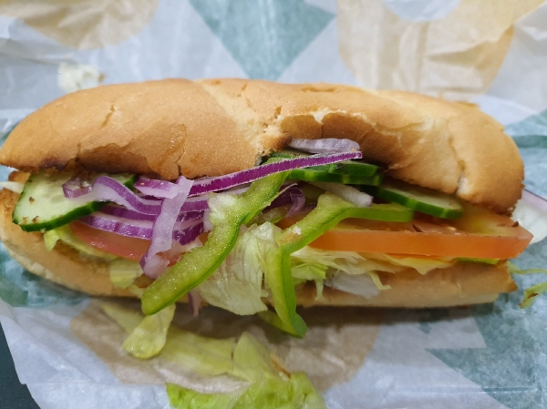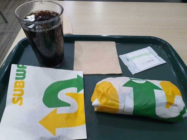 참고로 써브웨이는 샌드위치를 30cm로 주문하면 15cm짜리 샌드위치 2개를 줘요. 그러니 2개 먹고 싶으면 30cm로 주문하면 되요.