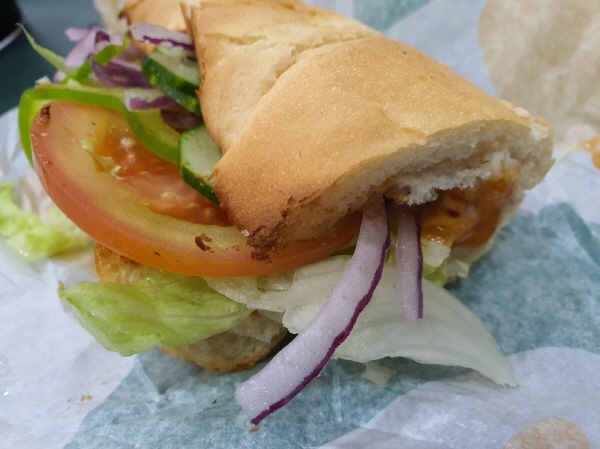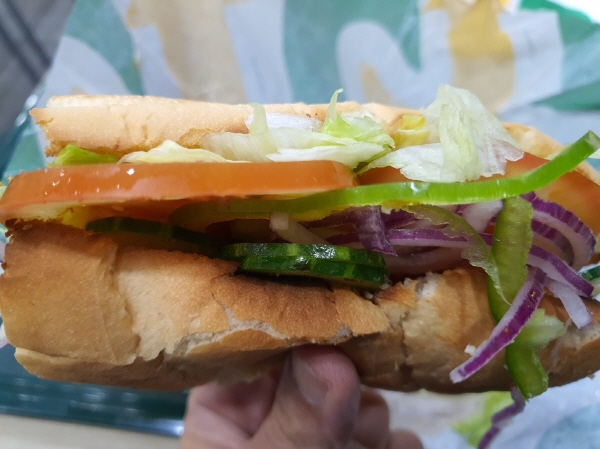 여기까지는 모든 써브웨이 샌드위치의 공통적인 맛. 야채가 맛있어요.