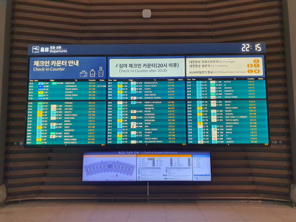 출발 안내판을 보고 여기는 제가 와본 적이 없다는 것을 다시 한 번 확인했어요. 제가 인천공항을 이용해서 갔던 타슈켄트, 이스탄불 등이 없었어요. 지금도 그런 지는 모르겠지만, 제가 이스탄불을 갈 때는 그게 그날 거의 제일 마지막 출국 비행기였어요. 어렴풋 기억하기로는 23시 50분 탑승인가 그랬어요. 그래서 면세점도 불이 다 마감된 후에 탑승하는 비행기였어요.