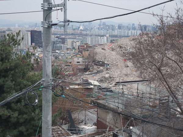 우사단로10길 중 모스크에서 한강 쪽으로 내려가는 길은 재건축을 위해 막혀 있었어요.