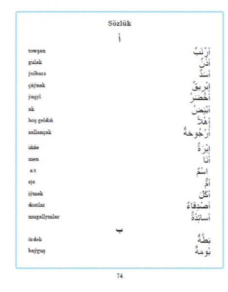 투르크메니스탄 중학교 1학년 - 5학년 아랍어 교과서는 상당히 딱딱한 편이었어요. 단어를 저렇게 많이 외우라고 할 거라면, 그리고 그게 단순히 주격 단수가 아니라 동사도 섞여 있고 복수도 섞여 있고 주격, 대격, 속격 형태도 섞여 있을 거라면 중간중간에 문장을 넣어주고 지문도 넣어줘서 외우라고 하면 괜찮았을 텐데 왜 저렇게 딱딱하게 만들었는지 궁금해졌어요.