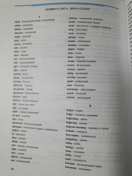 읽기 자료는 93쪽에서 끝나요. 그 다음에는 이렇게 아제르바이잔어 문법 용어에 대한 러시아어 문법 용어집이 나와요.