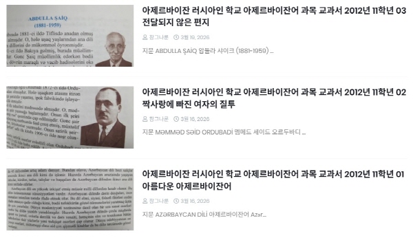 아제르바이잔 러시아인 학교 11학년 아제르바이잔어 과목 교과서 지문은 아래 구글 블로거 블로그 링크로 들어가면 볼 수 있어요.
