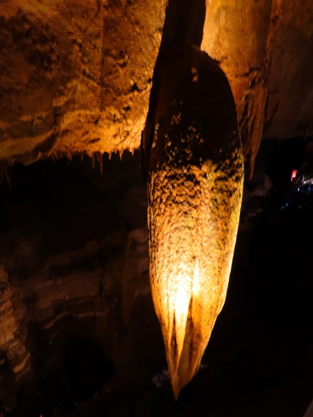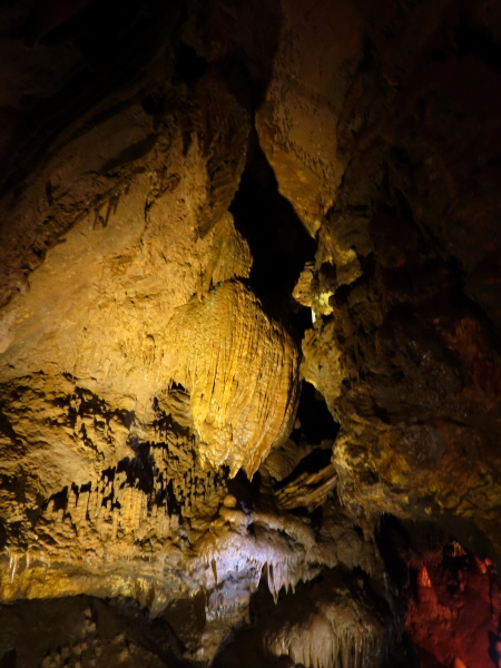 설명을 보니 이게 1t이 넘는 무게인데 여전히 잘 매달려 있다고 나와 있었어요. 관광객들이 볼 때마다 이거 떨어지는 거 아니냐고 걱정하는데 동굴 발견 이후 지금까지 아주 잘 매달려 있다고 나와 있었어요.