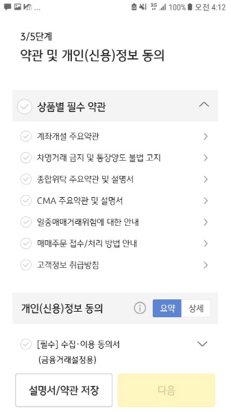 이제부터 발행어음형 CMA 계좌 개설 절차가 진행되요.