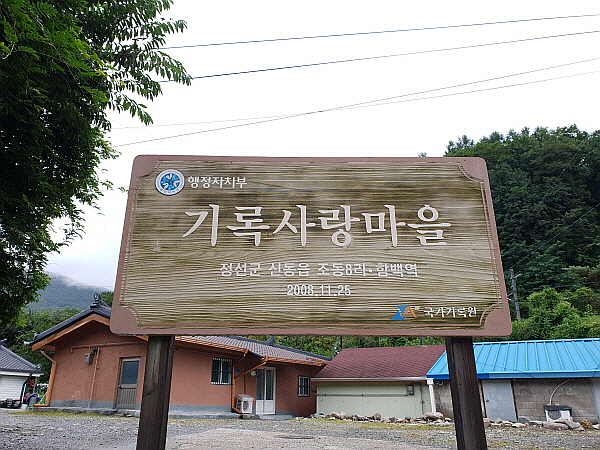 입간판이 보였어요. 입간판에는 여기가 강원도 정선군 신동읍 조동8리이고 기록사랑마을로 지정된 곳이라고 양각으로 새겨져 있었어요.