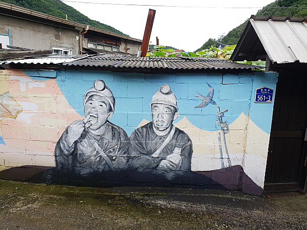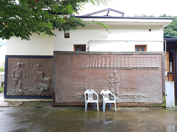 마을 입구에는 광산이 있던 시절을 표현한 부조가 있었어요.