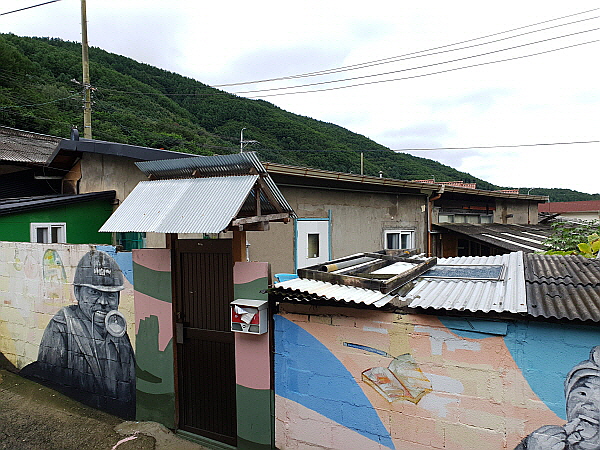 아주 허름한 무슨 사무실처럼 생긴 건물은 과거 탁아소였어요. 이 탁아소는 대한석탄공사 함백광업소와 연관된 건물이었어요. 이 동네 주민들 대부분이 함백광업소에서 근무하던 사람들이었어요. 여기에서 거주하던 사람들의 자녀들이 가던 탁아소 건물이었어요. 동네를 돌아다니며 대한석탄공사 함백광업소와 직접적으로 연관된 건물은 발견하지 못하고 있었어요. 만약 설명과 사전지식, 그리고 동네 입구에 있는 추모비와 벽화가 없었다면 여기가 탄광촌인 줄 몰랐을 거에요. 그만큼 과거 탄광의 흔적은 거의 다 지워져 있었어요. 낡은 옛 탁아소 건물은 안내 같은 것은 없었지만 몇 남지 않은 소중한 과거 탄광촌의 흔적이었어요.