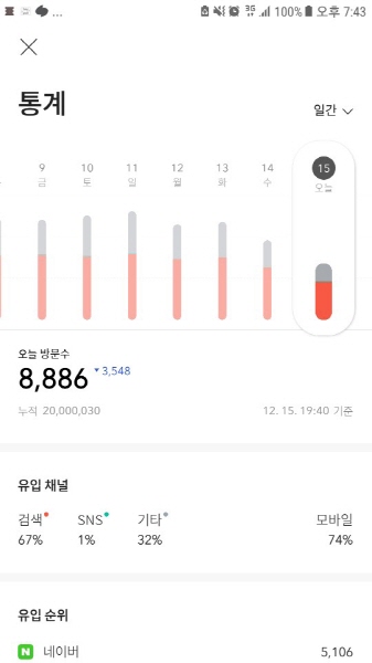 티스토리 블로그 누적 방문자수 20,000,000명 돌파
