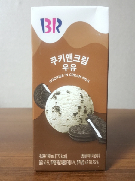 이번에 마셔본 편의점 우유는 배스킨라빈스 쿠키 앤 크림 우유에요.