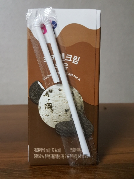 베스킨라빈스31 쿠키 앤 크림 우유에는 빨대가 부착되어 있었어요.