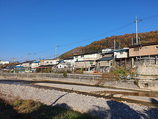 도계에 세 번째 왔지만 맑은 날은 처음이었어요. 앞서 두 번 왔을 때는 항상 날이 매우 안 좋았어요. 그냥 안 좋은 게 아니라 비가 내렸어요. 비가 내릴 때 도계읍 전두리는 세상이 빗물을 머금으며 채도가 높아지며 색이 진해지는 것이 아니라 검은 석탄가루 빛이 올라오며 검은색이 올라와 색이 진해졌어요. 그래서 전에 두 번 왔을 때는 진짜 까만 동네로 보였어요.