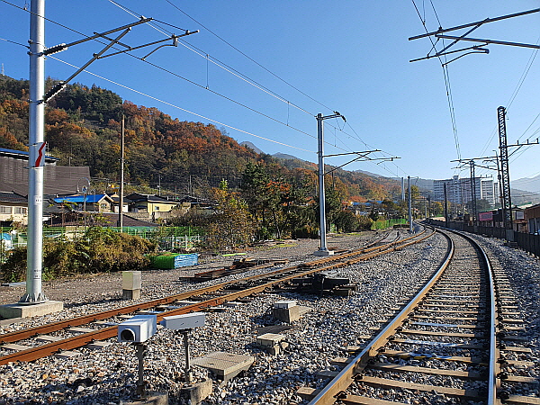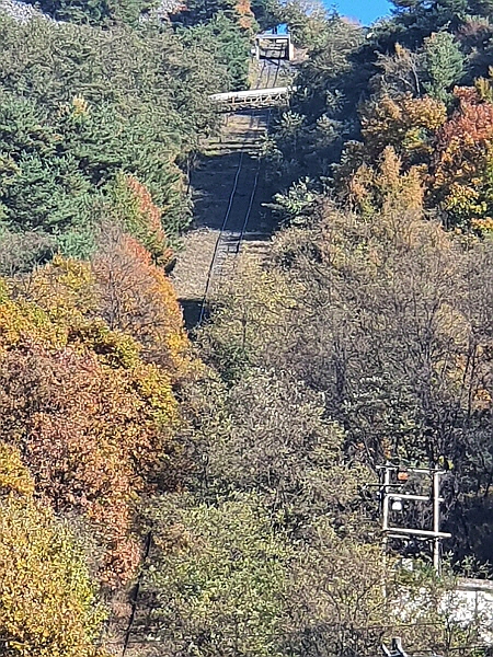 인클라인 철도가 보였어요. 인클라인 철도는 한국어로 강삭철도라고 해요. 인클라인 철도는 열차 차량에 줄을 연결하고 줄을 모터 동력으로 풀고 말며 움직이는 철도에요. 도계역 근처에는 인클라인 철도가 있어요. 사람이 타고 다니는 철도는 아니에요. 바로 인근 대한석탄공사 도계갱에서 나온 폐석을 광차에 실어 산 위로 운반할 때 사용하는 인클라인 철도에요.