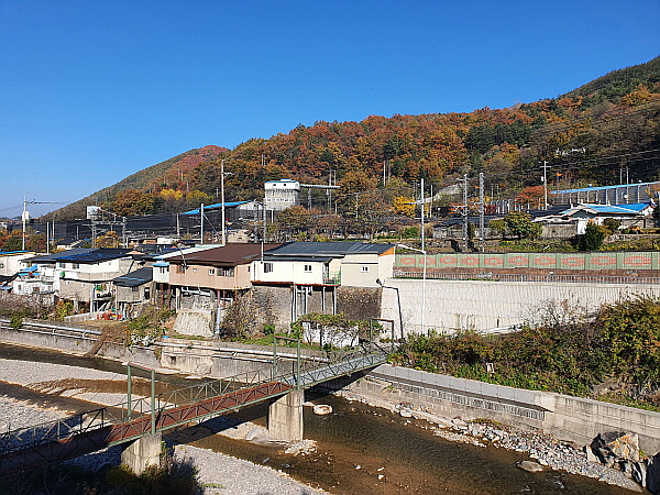 도계터미널 뒷편에서 본 도계읍 전두리 풍경은 아름다웠어요. 다시 도계터미널 버스 주차장으로 갔어요.
