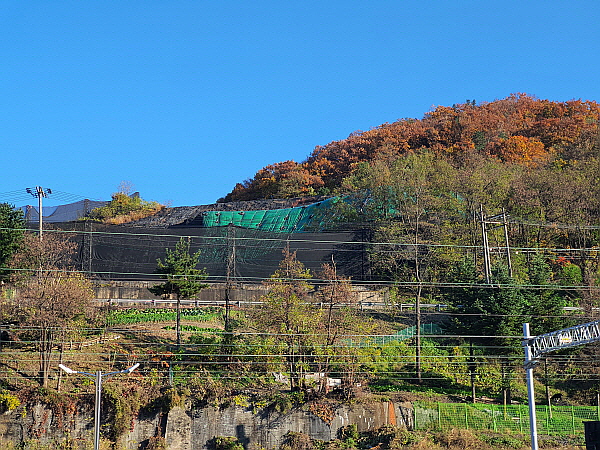 맑은 날 와서 보니 전에 와서 봤을 때 도계의 색깔과는 완전히 다른 색이었어요. 게다가 그 사이 단풍도 매우 예쁘게 들었어요. '탄광촌'이라는 이미지만 지우고 보면 자연 풍경이 매우 아름다운 지역이었어요.