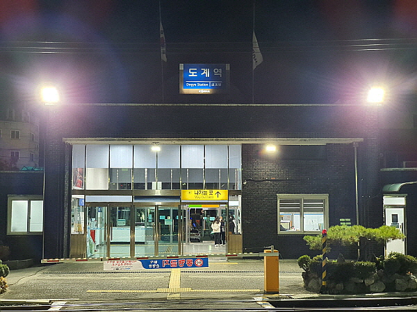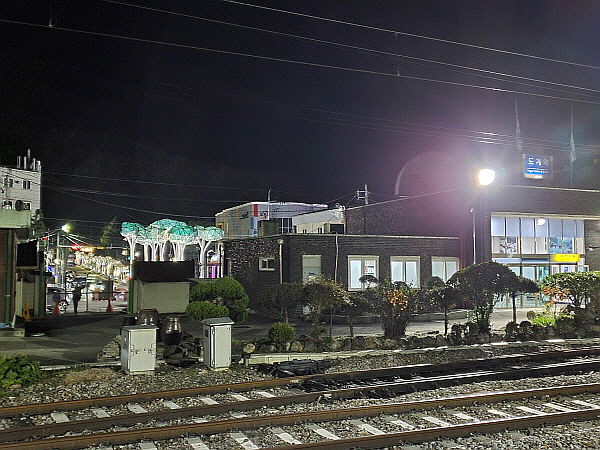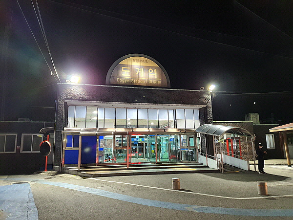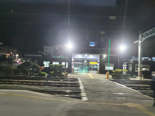 열차 탑승 시간이 가까워졌어요. 2022년 11월 2일 오후 6시 47분, 기차를 타기 위해 도계역 대합실에서 나와 도계역 승강장으로 갔어요.