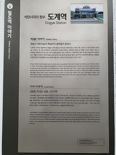 도계역 소개문이 있는 안내판이 있었어요. 안내판에는 다음과 같은 소개문이 적혀 있었어요.