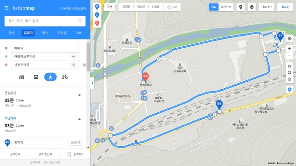 예미역에서 아리랑 브루어리 갔다가 신동우체국으로 가는 길은 총 2.3km였어요. 제가 간 날은 유독 더운 날이었어요. 그래서 이거 걸었다고 땀이 났어요. 그래도 제주도 사는 친구가 다른 곳에서 구하기 힘든 귀한 정선군 지역 수제맥주 아리비어를 선물받고 좋아할 걸 생각하니 기분이 좋았어요.