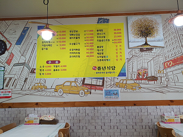밖에서 고민하다가 풍년식당 안으로 들어갔어요.
