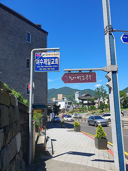 천사벽화골목 입구가 나왔어요. 아직은 갈 곳이 아니었어요. 점심부터 먹어야 했고, 여수교동우체국 관광인도 모아야 했어요.