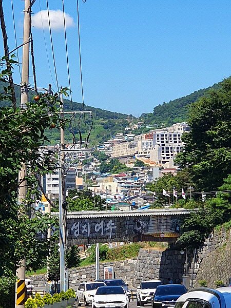 내리막길을 내려가면서 본 여수시 일대는 산비탈을 따라 마을이 자리잡고 있었어요. 말이 좋아 마을이지, 스케일이 엄청나게 컸어요. 이 정도라면 골목길 돌아다니며 구경하는 거 좋아하는 저라면 5박 6일 동안 놀 수 있을 거 같았어요.