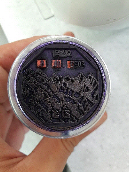 간성우체국 안으로 들어갔어요. 직원분께 관광우편날짜도장을 받으러 왔다고 말씀드렸어요. 직원분께서 관광우편날짜도장을 건네주셨어요.