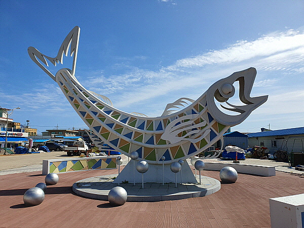 거진항에는 커다란 생선 조형물이 있었어요.