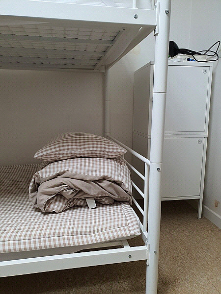 춥지는 않았지만, 대신 히터 난방 특성상 상당히 건조했어요. 이건 덕스 게스트하우스 뿐만 아니라 겨울철에 히터 겸용 에어컨으로 난방하는 곳이라면 다 똑같이 발생하는 단점이에요. 고급 호텔도 겨울에 가면 히터 난방 때문에 무지 건조해요. 저도 아주 오랜만에 열풍기 난방을 경험해서 첫날에는 일어났을 때 목이 말랐어요. 둘째날에는 그새 적응되어서 괜찮았구요.
