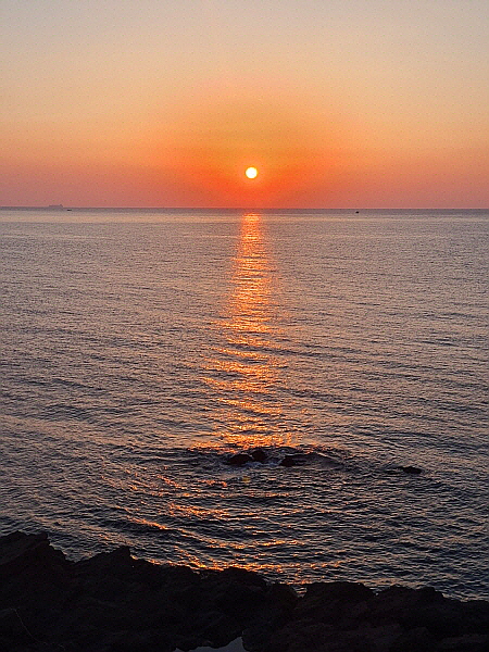 영해버스터미널에서 축산항까지는 버스로 10분 조금 넘게 걸려요. 제 경우는 12분 걸렸어요. 영해버스터미널에서 축산항으로 가는 첫 차는 새벽 6시 50분에 있어요. 즉, 덕스 게스트하우스에서 6시 40분에 나와서 영해버스터미널로 간 후, 축산항 가는 첫 차를 타면 척산항에 7시쯤 도착해요. 이러면 해가 늦게 뜨는 겨울에는 축산항에서 일출을 볼 수 있어요.