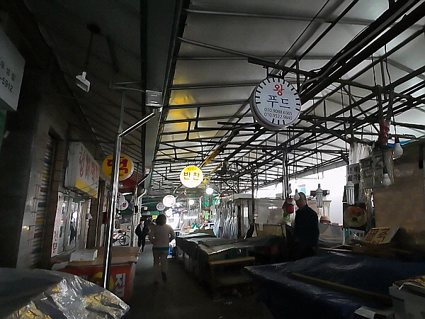신월7동 약수시장은 아케이드 설치는 안 되어 있었어요. 대신 통로 천장에 천막을 씌워놨어요. 신월7동 약수시장은 평범한 작은 골목 시장이었어요. 사람들이 몰려 살며 자연스럽게 형성된 골목 시장 같았어요.