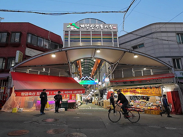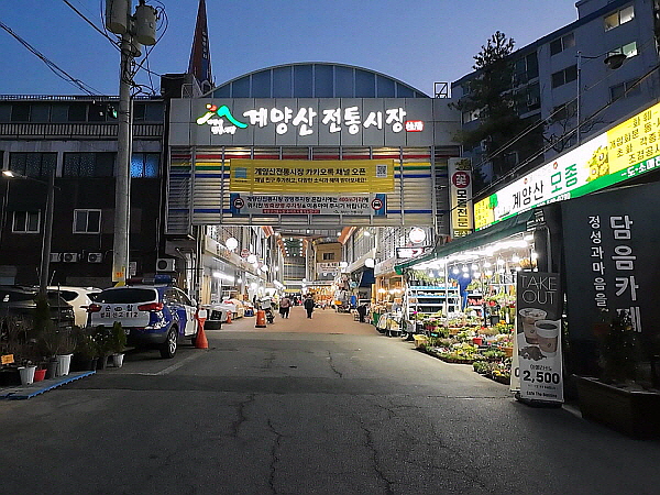 친한 동생과 점심을 같이 먹었어요. 카페 가기 전에 잠시 산책을 했어요. 친한 동생과 여기저기 돌아다니다가 계양산 전통시장까지 왔어요.