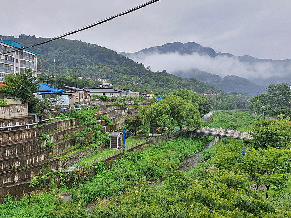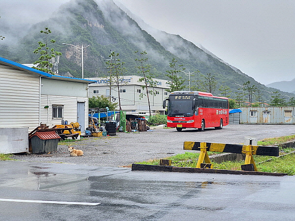 2022년 8월 31일 오후 4시 10분 조금 넘어서 친구가 영월역을 향해 운전하기 시작했어요. 아주 이른 저녁으로 칼국수를 먹었기 때문에 영월역까지 시간이 아주 널널했어요. 급할 것이 하나도 없었어요. 안 가본 길을 가는 것이 아니라 여기까지 왔던 길을 그대로 되돌아가는 길이었어요. 영월역까지 가는 길이 막힐 리 없었어요. 영월역까지 가는 길은 도로 상태도 괜찮은 편이었어요. 친구는 차를 매우 빠르게 운전했어요. 운전하면서 아주 즐거워하고 신났어요. 저는 당연히 엄청 무료했어요. 자동차 운전 게임하는 사람을 옆에서 멍하니 지켜보는 기분이었어요. 둘이 딱히 말이 없었어요. 친구가 고속으로 운전하는 차 안에서 버스 정류장 사진을 찍었어요. 마을 이름은 '개미촌'이었어요. 나중에 여행기 쓸 때 바로 조금 전..