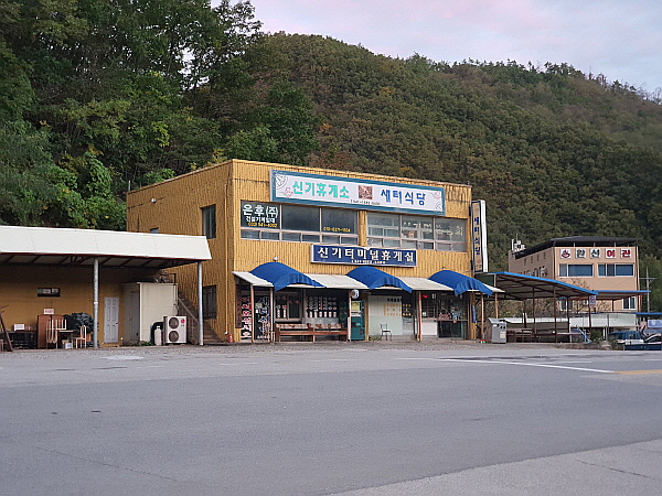 제가 내린 신기 버스 정류장을 바라봤어요. 신기 버스정류장에서 운탄고도1330 9길 정식 시작점인 신기역까지는 500m 조금 안 되는 거리였어요. 태백시에서 버스 타고 운탄고도1330 9길 시작점 근처인 신기터미널로 오니 500m 더 지나서 출발하는 셈이 되었어요. 500m 정도는 봐주십시오. 대신에 도경리역 갔다 올 거라 훨씬 더 걷습니다. 운탄고도1330 9길을 정확히 시작하려면 500m 남쪽으로 내려가서 신기역을 찍고 와야 했어요. 왕복으로 걸으면 1km 남짓 되는 길이었어요. 걸어갔다 오려고 하면 쉽게 다녀올 수 있는 거리였어요. 아마 30분 채 안 걸릴 거였어요. 그러나 꼭 신기역을 갔다와야하는지 의문이었어요. 신기역은 지난번에 운탄고도1330 8길 걸을 때 다녀왔어요. 신기역에서 멀리 대금굴,..